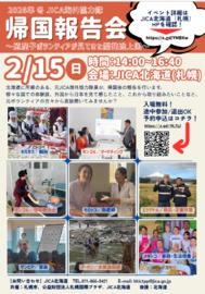 道産子隊員によるJICAボランティア帰国報告会。2018年3月以降に帰国したばかりのJICAボランティアを招き、開発途上国と呼ばれる国々での生活や活動を報告します。