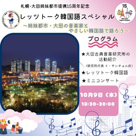 札幌と韓国・大田広域市の姉妹都市提携15周年を記念して、大田から音楽家の皆さんが来札します。